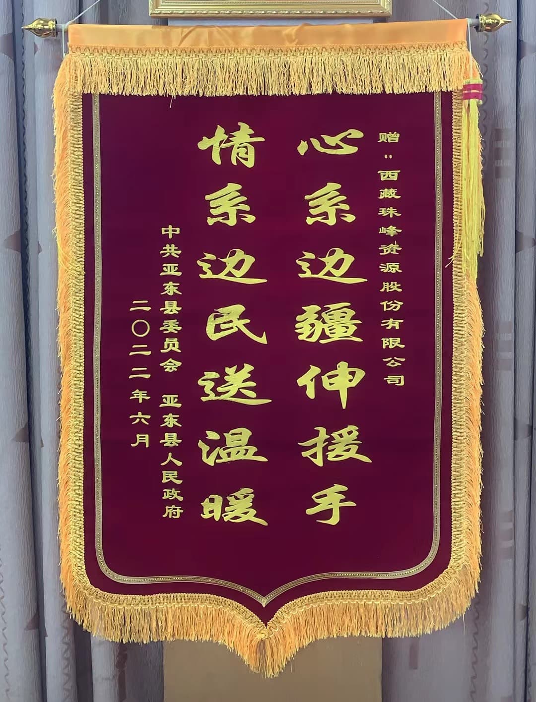西藏亞?wèn)|縣贈(zèng)送錦旗